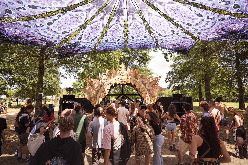 Design et fabrication de la Solar Stage, scène principale du festival ANOMA sur le thème de l'éruption solaire.